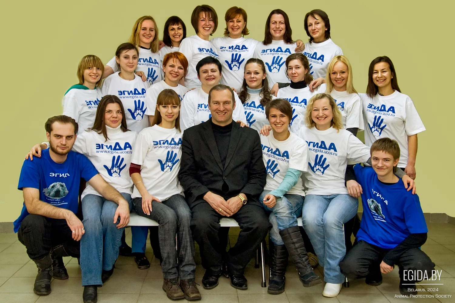 Вероника Десковец, когда-то молоденький волонтер, сегодня - новый Руководитель «Эгиды». Сейчас она - молодая, сильная женщина, которая приняла на себя преемственность и ответственность за организацию. Рядом костяк закаленных временем и опытом зоозащитников: юристы Оксана Бодунова, Юля Малятина, Александра Скурчик, спасатели котов и собак Марина Локтионова, она же - один из руководителей организации, Ольга Богдан, Анастасия Куракевич, Любовь Ивановна Матусевич, Белянова Наталья Александровна и еще, и еще с такими же горящими сердцами, как и 18 лет назад.