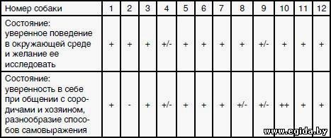 +/- : собака менее интенсивно изучает территорию, постоянно стремится оставаться вблизи хозяина, замирает у его ног, возможно, маркирует территорию с выгнутой спиной, не хочет вступать в контакт с другими людьми;