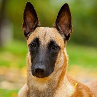 Малинуа. Однородный рыжий с "углем" и черной маской.