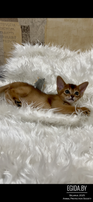 Предлагается к бронированию абиссинский котёнок, мальчик, возраст 1,5 месяца. У котёнка дикий (ruddy) окрас, формируется красивый тёмный оттенок. Отлично выражен тиккинг. Ушки большие, широко поставленные. Выразительные миндалевидные глазки. Мальчик очень ласковый, любит общение и конечно-же поиграть. Котёнок полностью социализирован. Все необходимые процедуры (дегельментизация, прививки, стерилизация, адаптация) мы проводим сами до передачи котёнка будущим владельцам. Необходимые документы (ветеринарный паспорт со сделанными прививками, родословная (метрика) и договор) будут предоставлены при передаче котёнка.