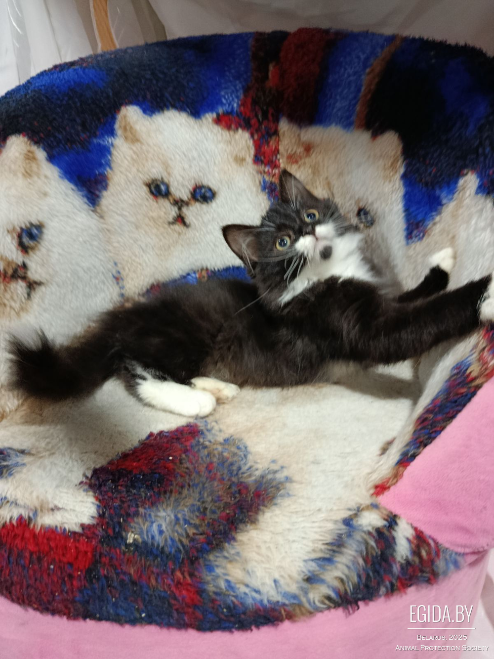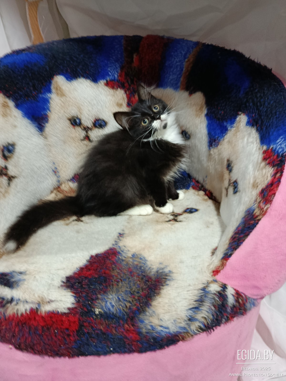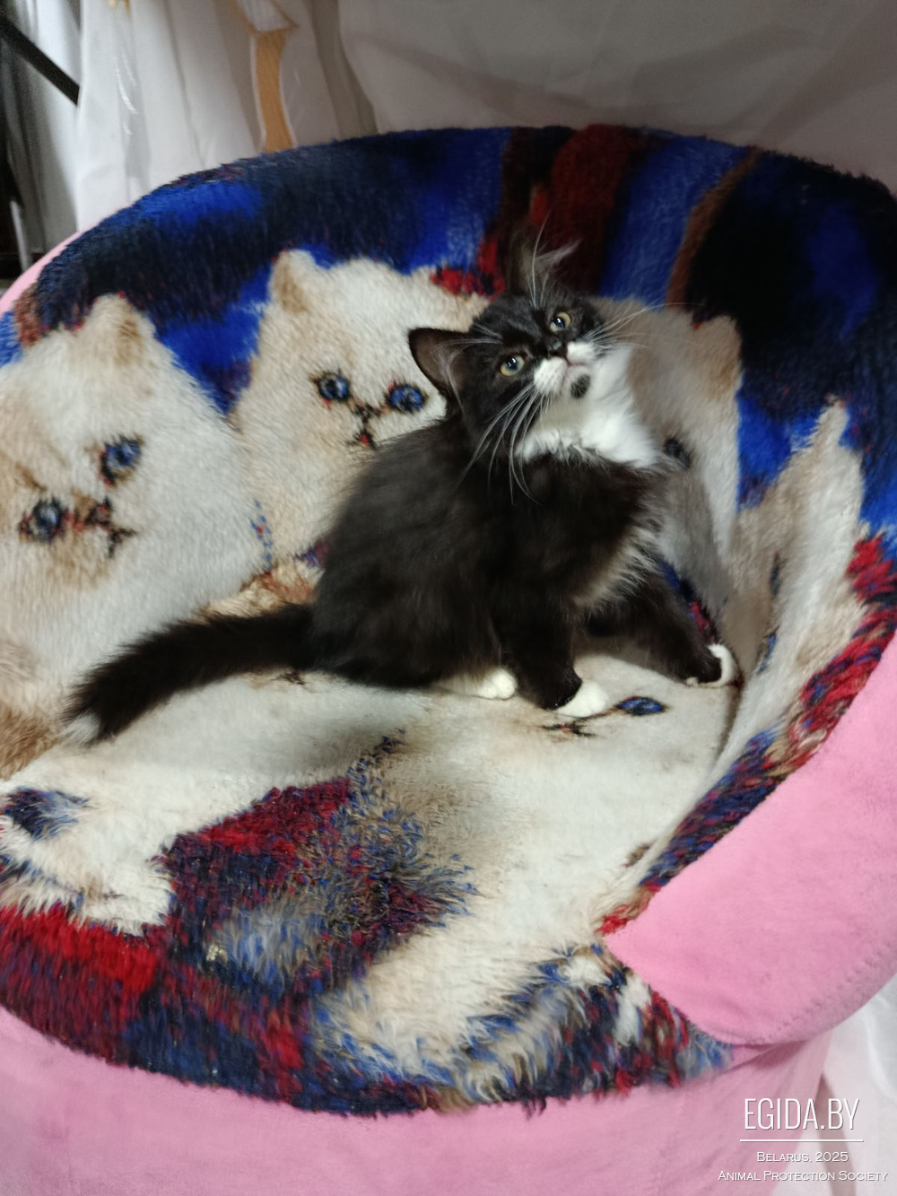 Знакомьтесь! Прелестная малышка Черри, 4 месяца. Очень красивая девочка, пушистая, с белой кисточкой на кончике черного хвоста и черной мушкой на белом подбородке. Та еще модница!!! Безумно ласковая, контактная, игривая, интересующаяся всем и вся. Прошла карантин, обработана от блох и глистов. Проверена на микроспорию. Результат отрицательный (заключение из клиники от 01.11.2025 имеется, проверялась с двумя рыжими братишками). Если заинтересовались, то вышлю само заключение, а также видео с забавной малышкой.