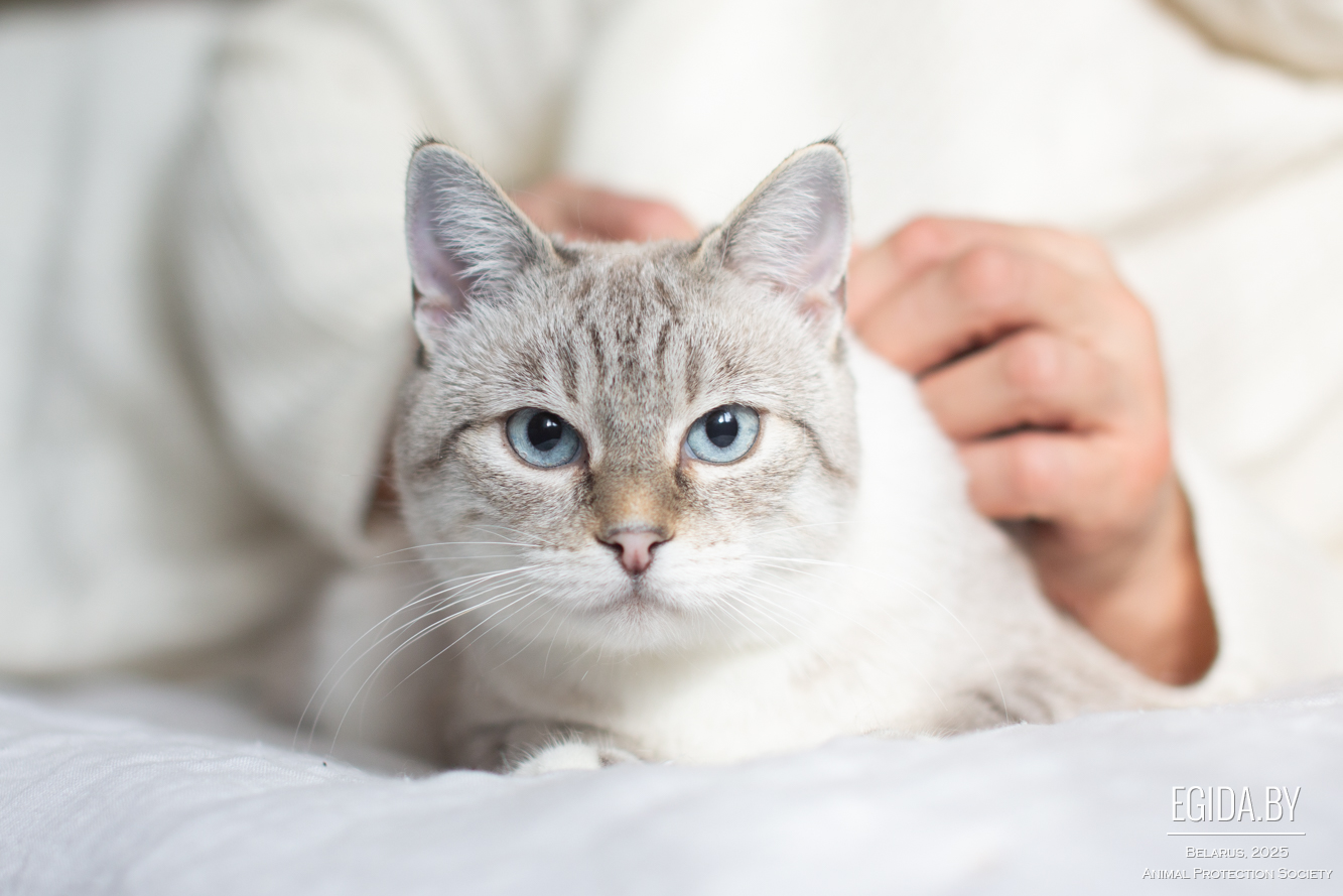 Мелания сочетает в себе всё, что хочется видеть в домашнем питомце: импозантную внешность, ум, самодостаточность и редкое внутреннее спокойствие. Голубые глаза, мягкий взгляд и лёгкая независимость — её формула обаяния. И мы очень надеемся, что её спокойное достоинство и голубые глаза растопят чьё-то сердце - и она наконец окажется там, где ей место: дома.