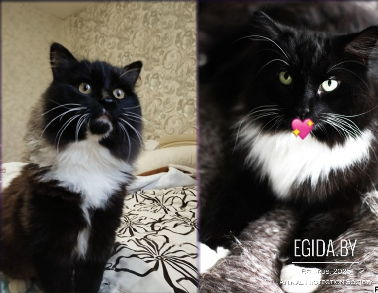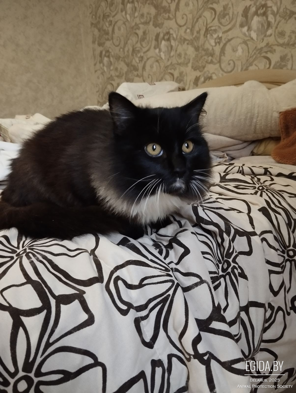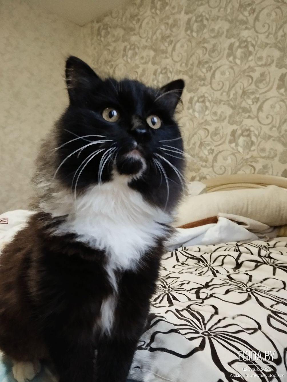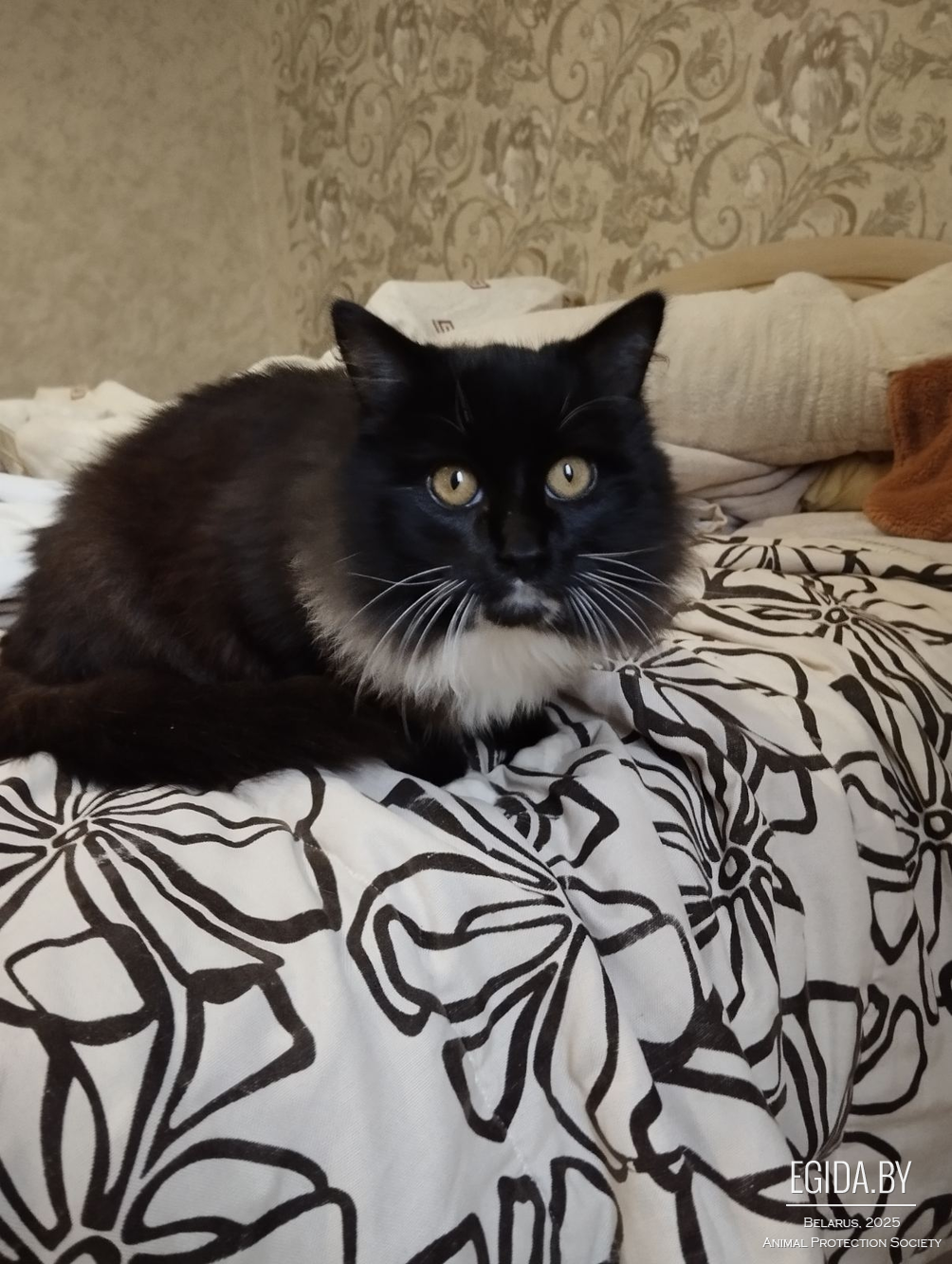Нельзя не отметить его природную красоту: пушистый, с черной, блестящей шерсткой, с белым галстучком и белыми носочками. Настоящий денди. Будет крупным котиком.