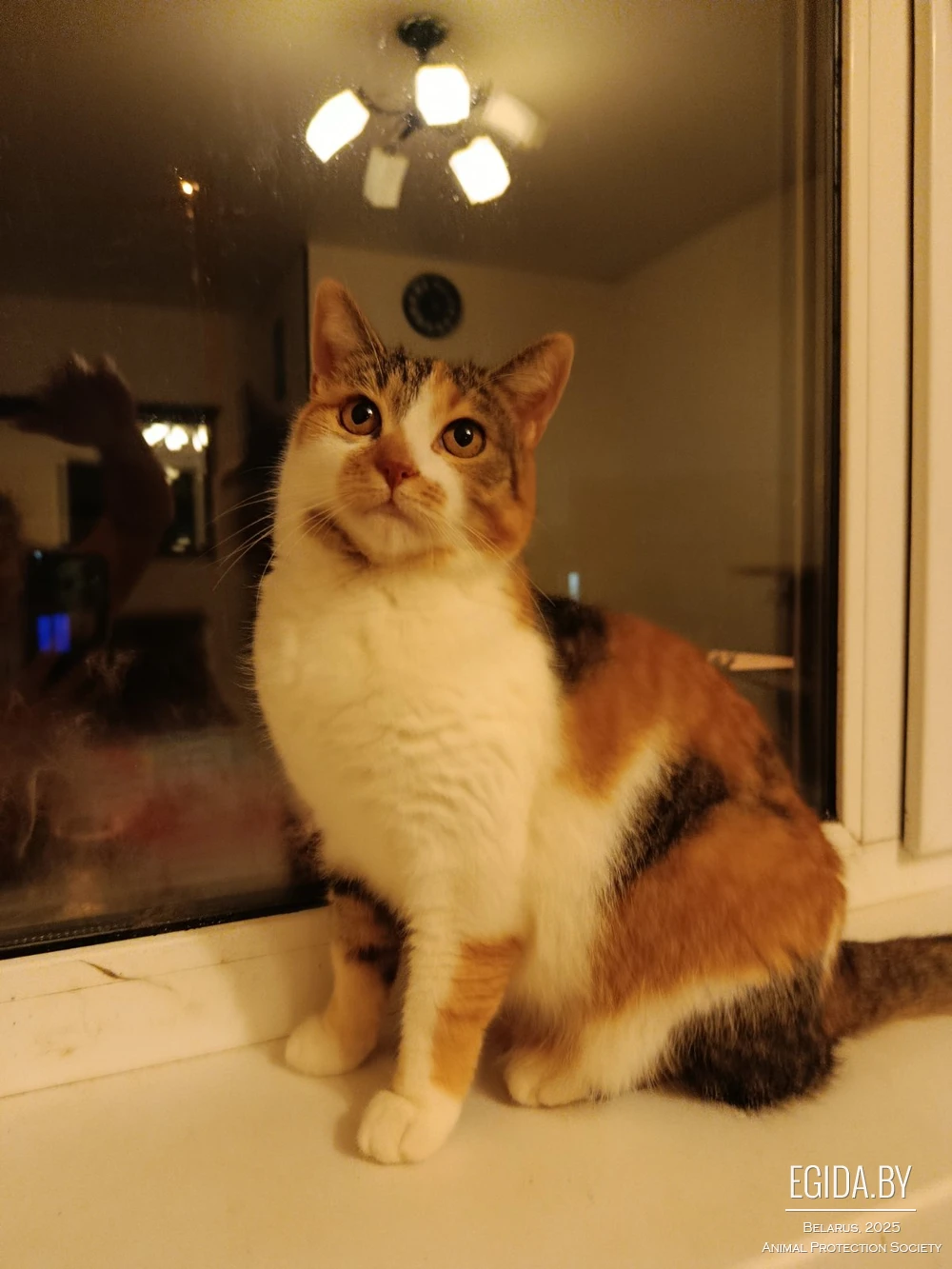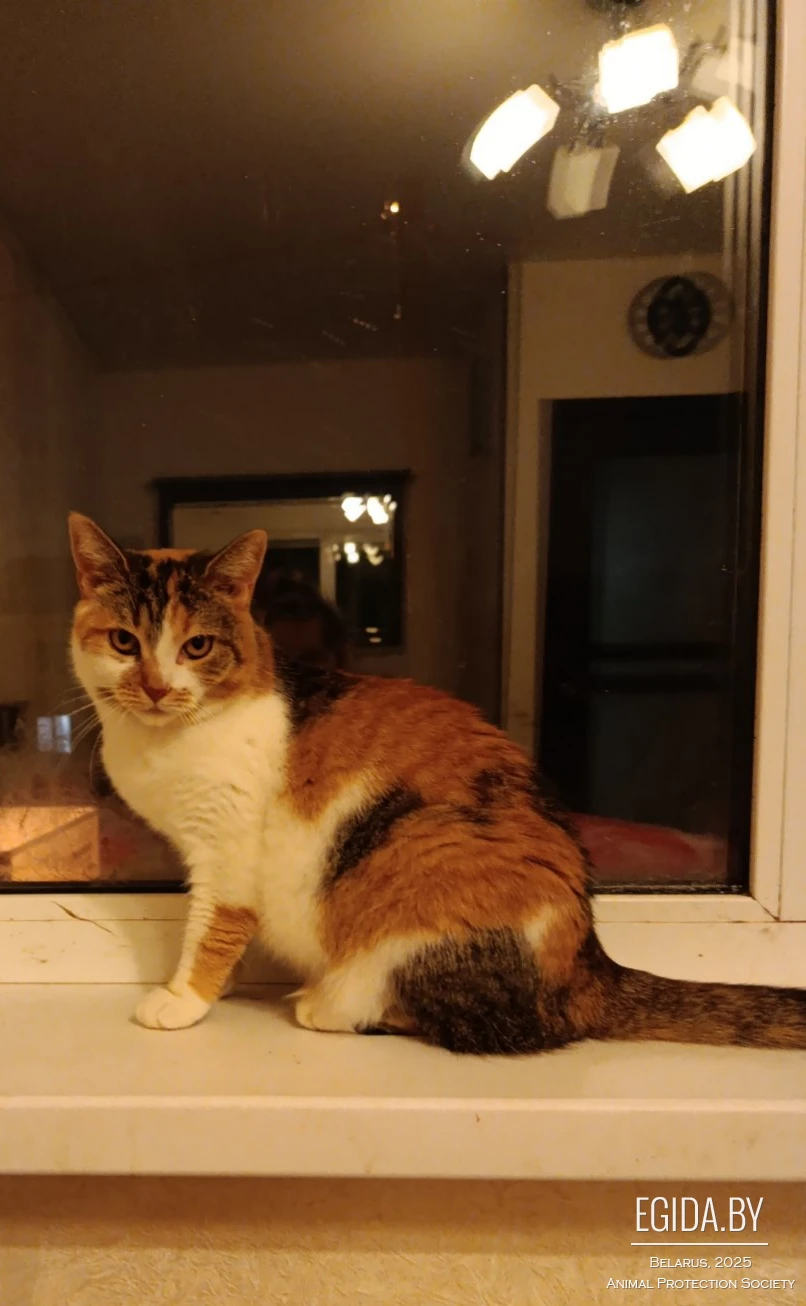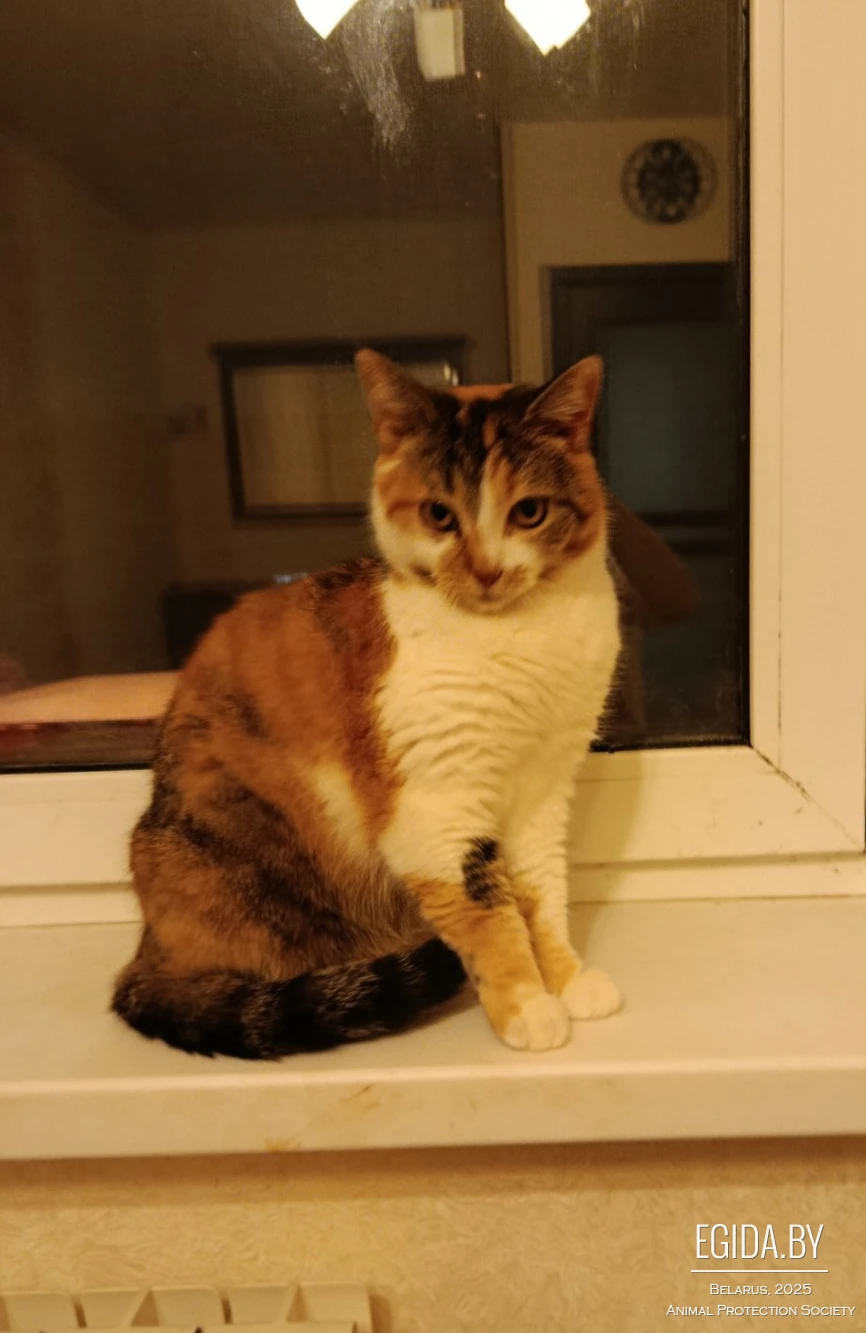 История у кошечки незавидная: 8 сентября 2025 г. в Минске на глазах у прохожих на пешеходном переходе машина сбавила скорость и из приоткрытой двери выбросили на проезжую часть трехцветную кошку. Она стала метаться по дороге и бросаться в ноги людям. Но все только сожалели, охали и все же проходили мимо, отворачивая голову в сторону. Так же проще... просто не замечать... Этой бедняге нельзя было не помочь. Так начался ее тернистый путь поиска новых хозяев, которые не предадут, не выбросят, не подвергнут опасности.