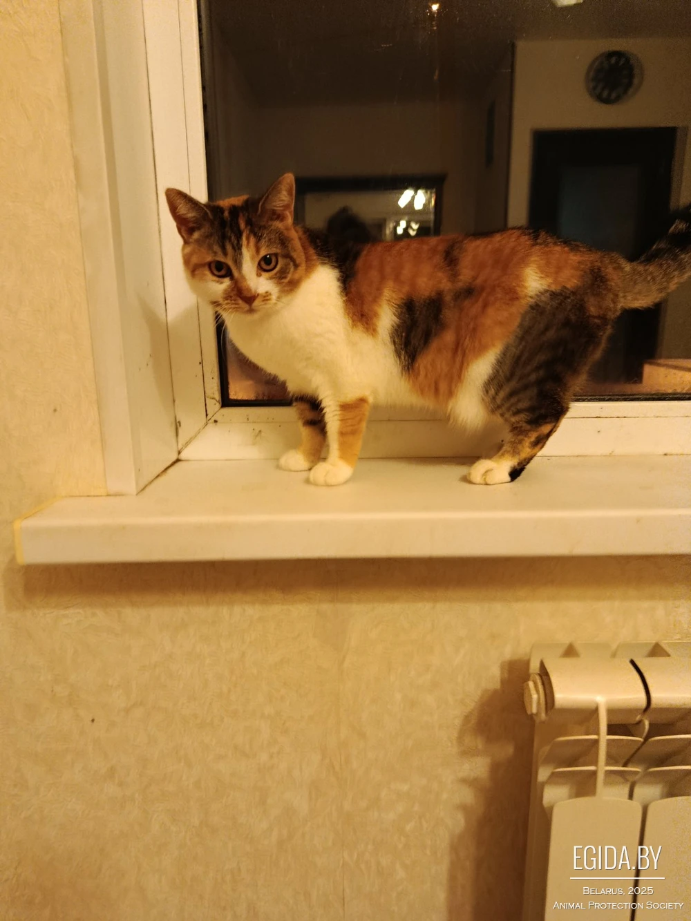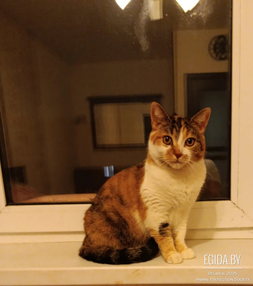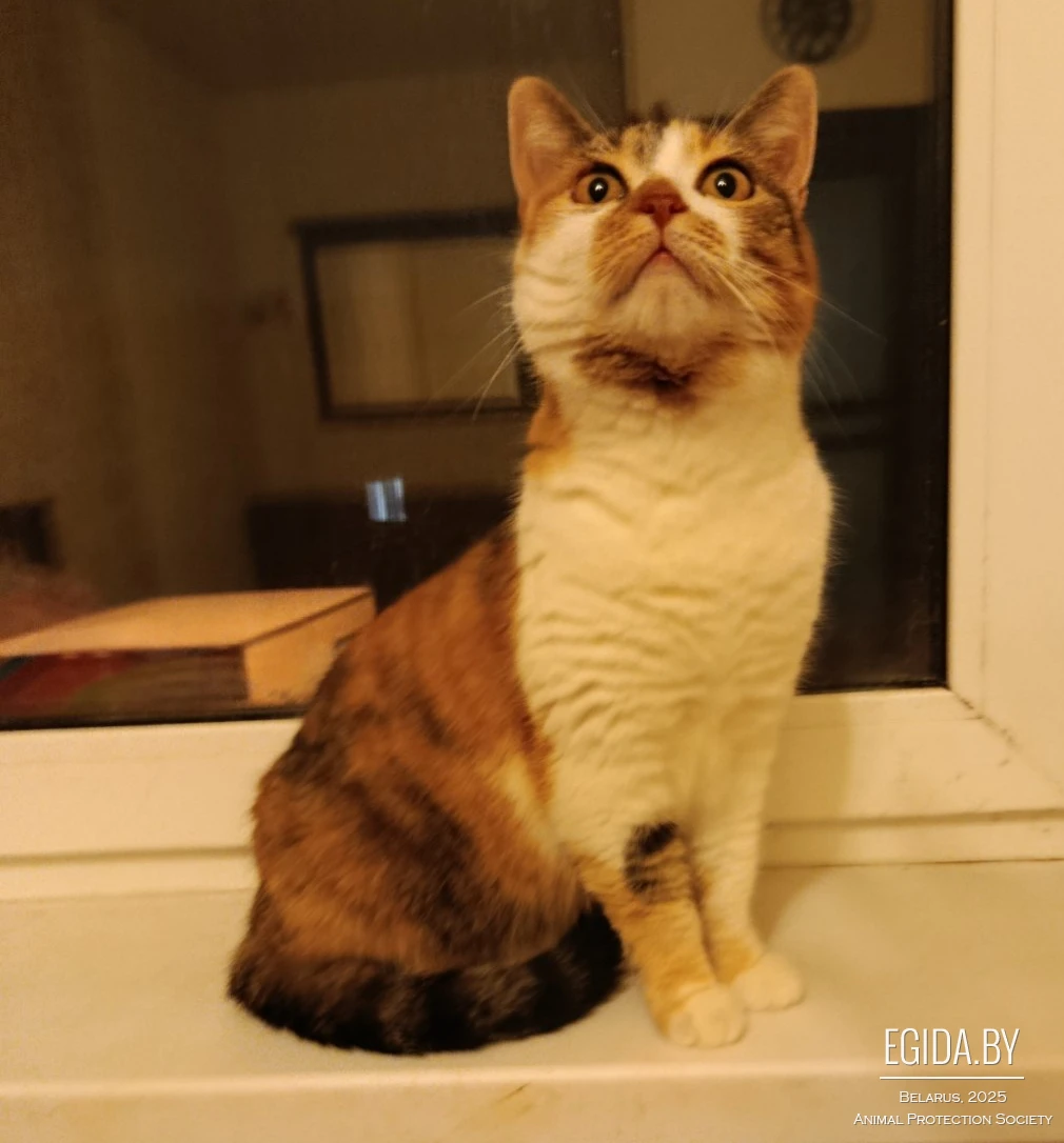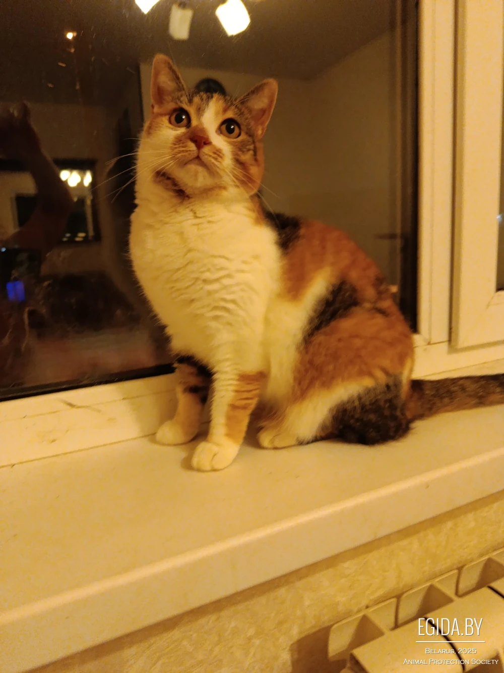 История у кошечки незавидная: 8 сентября 2025 г. в Минске на глазах у прохожих на пешеходном переходе машина сбавила скорость и из приоткрытой двери выбросили на проезжую часть трехцветную кошку. Она стала метаться по дороге и бросаться в ноги людям. Но все только сожалели, охали и все же проходили мимо, отворачивая голову в сторону. Так же проще... просто не замечать... Этой бедняге нельзя было не помочь. Так начался ее тернистый путь поиска новых хозяев, которые не предадут, не выбросят, не подвергнут опасности.