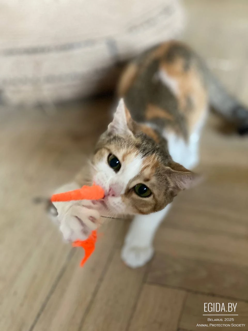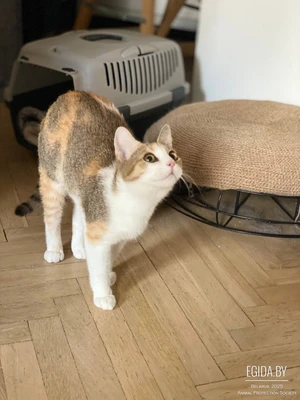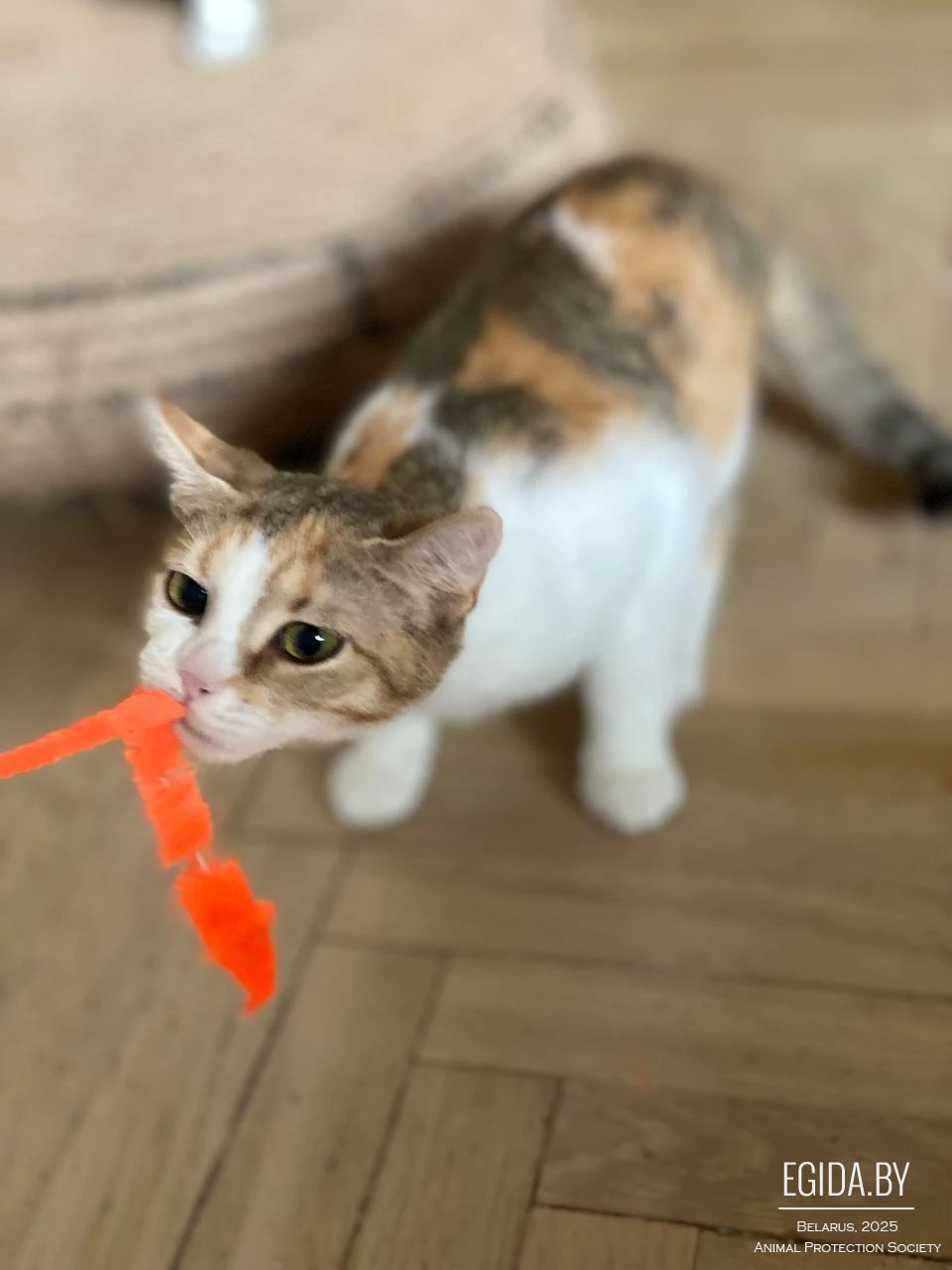 Стефочка такая девочка, девочка. Умненькие глазки, любопытная мордашка. Стефа активный и позитивный ребенок, девочке около 7 месяцев. Привита, обработки от паразитов сделаны, стерилизована. Стефа девочка аккуратная в еде и туалете, но вот игрушки разбрасывает. Очень заботлива, часто вылизывает братиков и сестричку. Любит играть с удочкой и мячиками. Не особо любит сидеть на руках, ей вообще не сидится на месте, ведь мир такой большой и интересный, но погладушки любит всем своим маленьким тельцем. Если ее поладить по спинке вскакивает и выгибает ее, видно сколько радости ей приносит внимание и ласка человека. Стефочка трехцветка, а такие девочки приносят удачу. Так почему бы вам не взять такой счастливый билетик? Кушает сухой корм, но от консервы на ужин точно не откажется. Лоточек, когтеточки всех видов, размеров и материалов освоила в совершенстве. Котенька хорошо воспитана, все уличные замашки и паразиты давно в прошлом. Мы ищем ей человека для создания прочного союза))