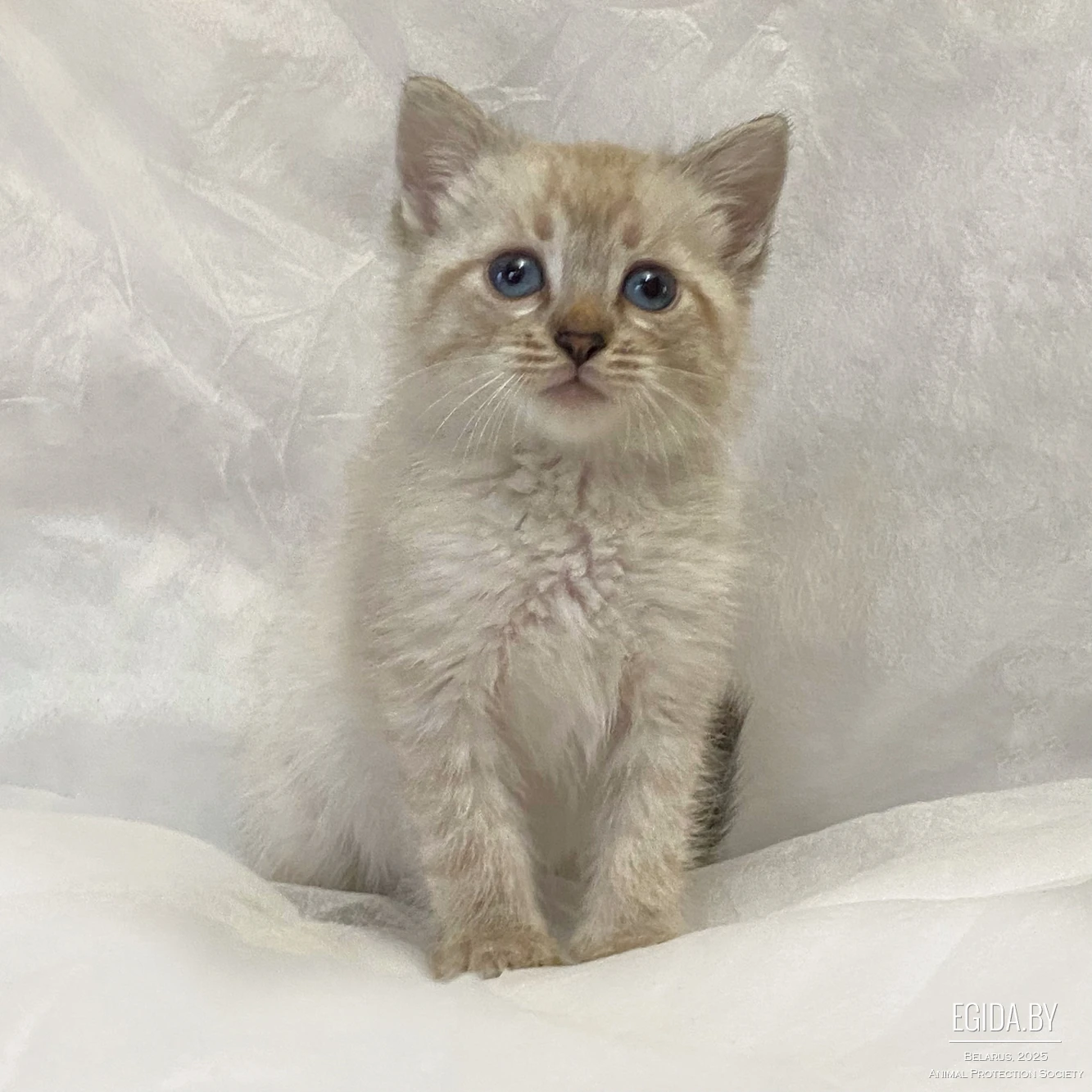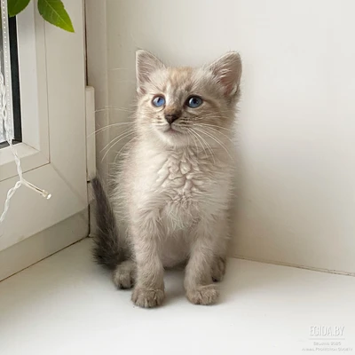 Амур, 2 месяца, голубоглазый мальчик пойнтового окраса, похож на тайского котёнка.
