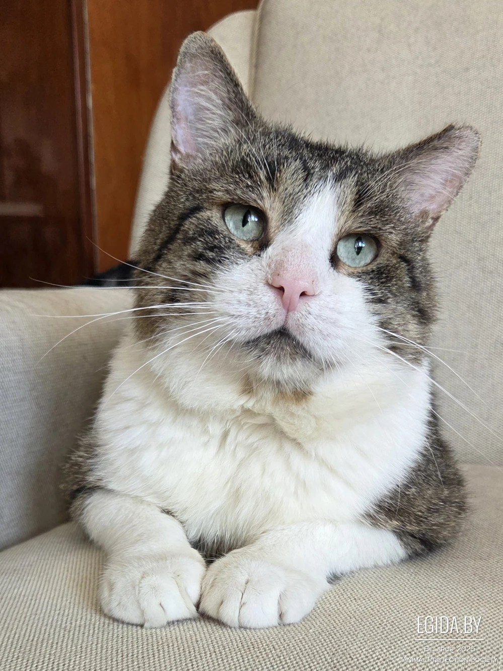 Котофей настолько обаятельный и душевный, что трудно не поддаться его чарам. По квартире ходит хвостом за временной мамой, урчит, перебирает лапками и всячески выражает свое восхищение радикальными переменами в жизни и судьбе.