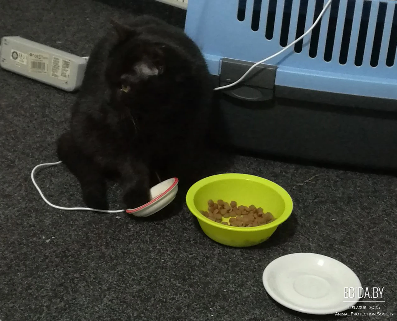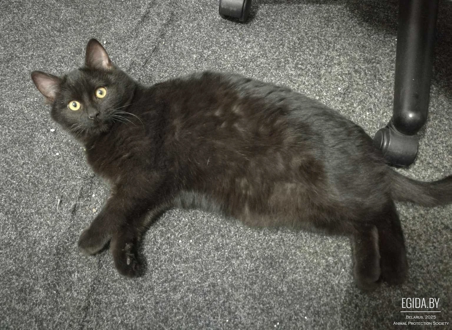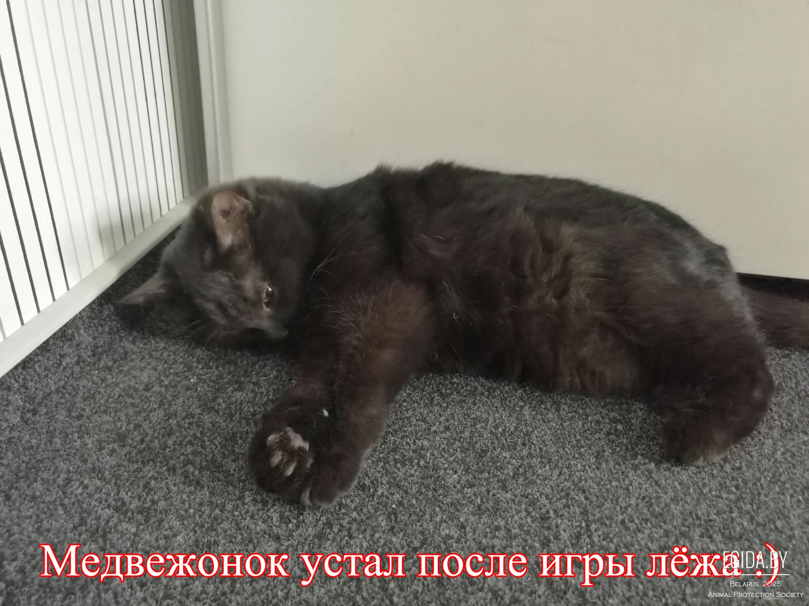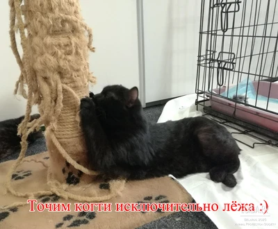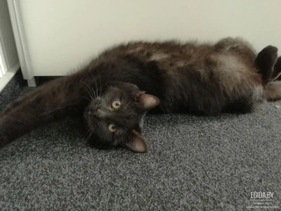Идеальный вариант для пожилого человека либо для того, кто хочет себе ласкового, ручного, ленивого и несколько неуклюжего котёнка. Он готов, чтобы его не переставая чесали в любых местах. При малейшем прикосновении превращается в «вату». Просто черненький пушистенький тюфячок. Шерсть черная, блестящая, со светлым подшерстком, на ощупь очень приятная, как пух, но при этом котик практически не линяет. Никогда не мяукает, только крайне редко муркает и постоянно урчит от удовольствия прикосновения человеческой руки. Несколько неуклюжий и очень смешной. Играть любит, но преимущественно лёжа с каким-нибудь шнурком или игрушкой, и не более одной минуты. Может кушать из миски сидя, потом ложится, а потом и засыпает с головой на краю миски вместо подушки. Котик ждет своего человека, с которым можно будет спать вместе по ночам, а днем лениво сидеть на руках и смотреть телевизор. Котенку около 5 месяцев, но он очень крупный для своего возраста (именно крупный, а не толстый). Приучен к лоточку, кастрирован, привит, кушает абсолютно всё, НЕ дерёт обои и остальную мебель (он просто этого даже не знает), точит когти только о когтеточку.