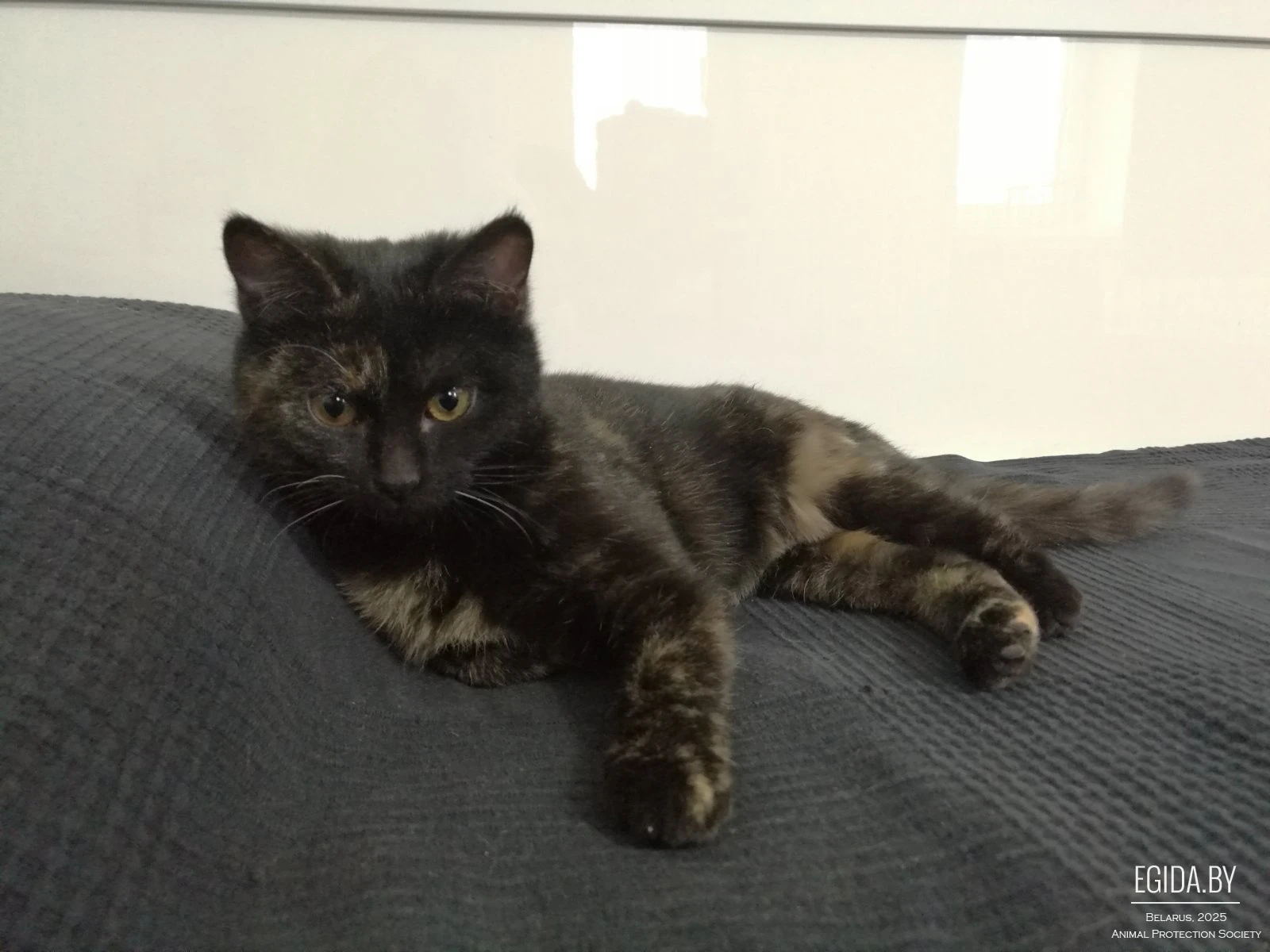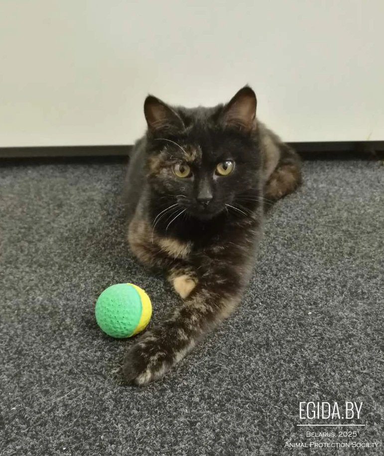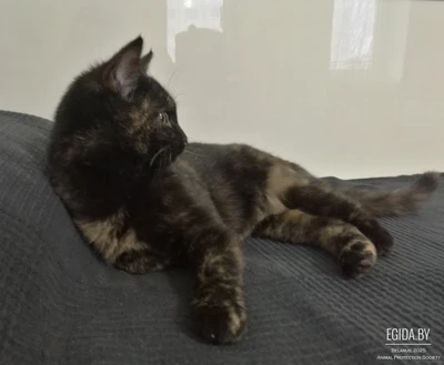 Суперласковая, умная, активная и игривая кошечка-трёхцветка. Идеальный вариант для семьи с детьми. Несмотря на то, что она активная и игривая, она никогда не нападает на человека – знает меру игре и понимает, когда наступает грань, которую не стоит переступать. Она может как сумасшедшая бегать за лазером, но как только луч попадает на ногу человека, она резко останавливается и ждет, пока луч снова упадет на пол. Очень любит ласку, сразу начинает урчать при малейшем прикосновении. Шерсть блестящая и на ощупь очень приятная, как пух, но при этом она практически не линяет. Никогда не мяукает, только крайне редко муркает и постоянно урчит от удовольствия, когда кто-то просто обратит на нее внимание. Очень аккуратная, ходит по тумбе так, что никогда ничего не уронит. Мягкую мебель и обои не трогает, точит когти только о когтеточку. Настоящая чистюля: ходит в лоточек, аккуратно всё закапывает, себя полностью вымывает. Кушает всё: и сухой корм, и обычную человеческую еду. Кошечке около 5 месяцев, стерилизована, привита.