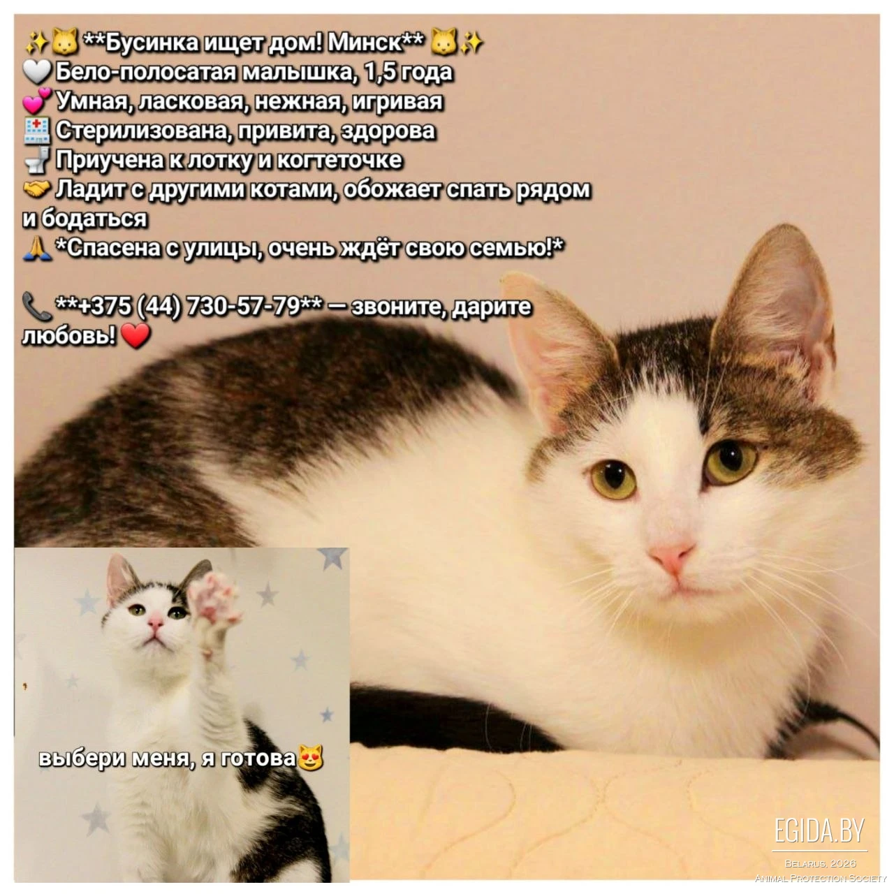 Бусинка ищет дом! Очаровательная бело-полосатая малышка!