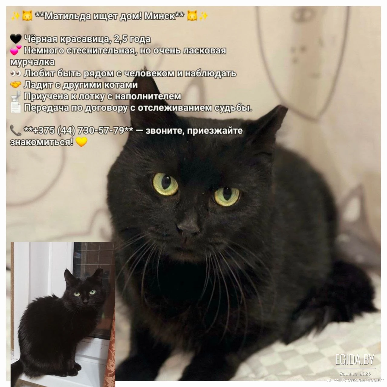 Ищет дом чёрная кошечка Матильда, которая была спасена с улицы. Возраст 2,5 годика. Немного стеснительная и осторожная девочка, нужно будет время привыкнуть к новому дому.
