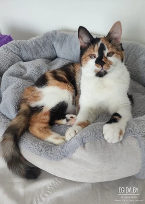 Милая, нежная кошечка Сонечка. Ей нет ещё и года, стерилизована, обработана. Миниатюрная, миленькая , хорошенькая, культурная, хорошо знает лоточек и когтеточку, ничего на портит. Любит играть в мячик , сама приносит Вам, чтобы играли с ней, а ещё умеет говорит слово МА МА . Придет к Вам , ляжет на грудь и будет петь песенки. Сонечка- это прекрасная кошечка.