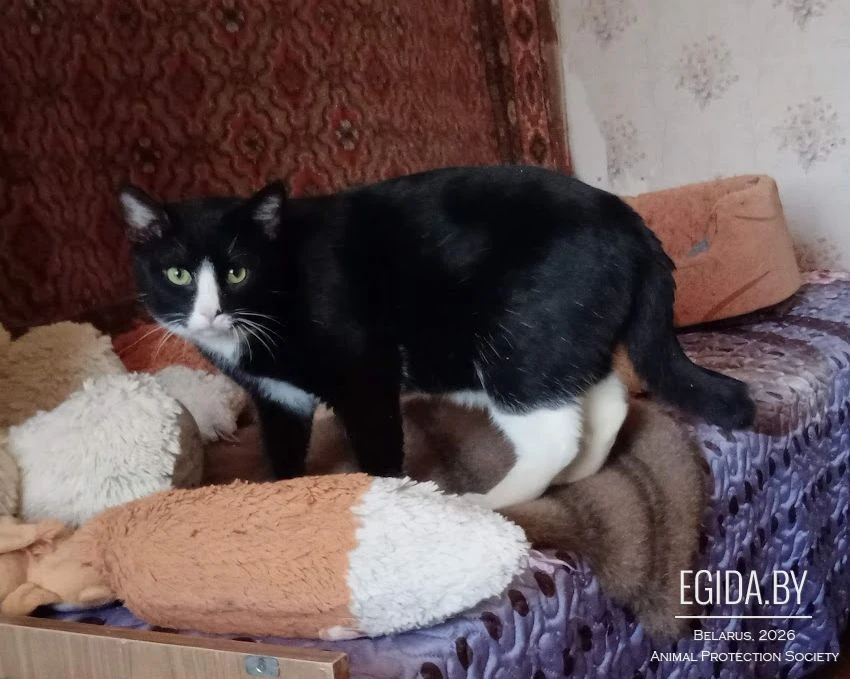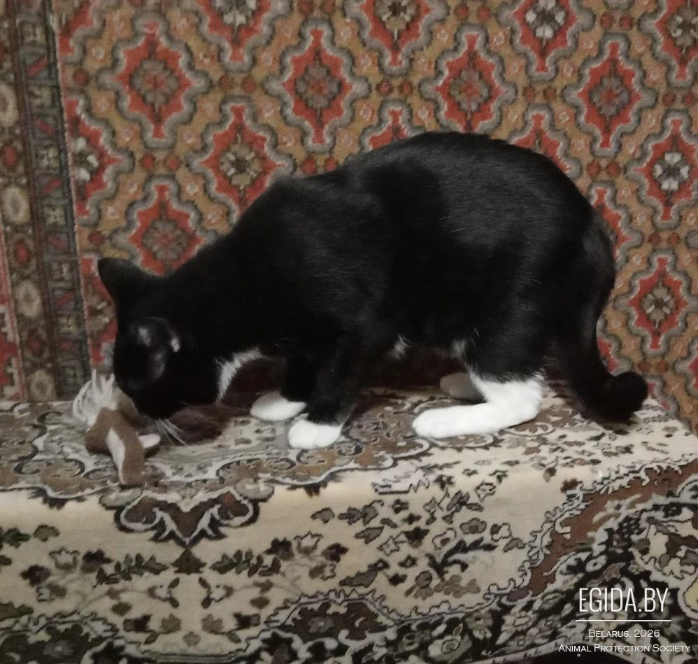 Добрый наивный ребенок, потенциально очень ласковый. Сейчас обожает, когда гладят, но позволяет это делать только в одном месте, которое сам выбрал – на книжной полке, которая фигурирует на большинстве фото. Прыгучий, любит на шкафу сидеть.