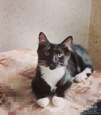 Очаровательный котенок Болек, 8 мес, кастрирован, неотразимый джентельмен в черном фраке с белой манишкой, в черных штанишках и белых сапожках, яркую ...