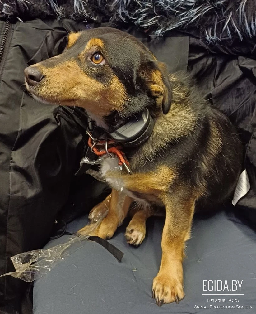Приютили на холод собаку. Найдена в районе метро "Уручье".Очевидцы утверждают, что видели ее путешествие в автобусе №169 Военный городок – Уручье. Характерные приметы: сука, милая, послушная, когти острижены ухоженные, на мордочке мелкие шрамики от старых повреждений, возраст указан предположительно, ошейник- красного цвета, а также электронный блок "анти-лай" (видны на фото).