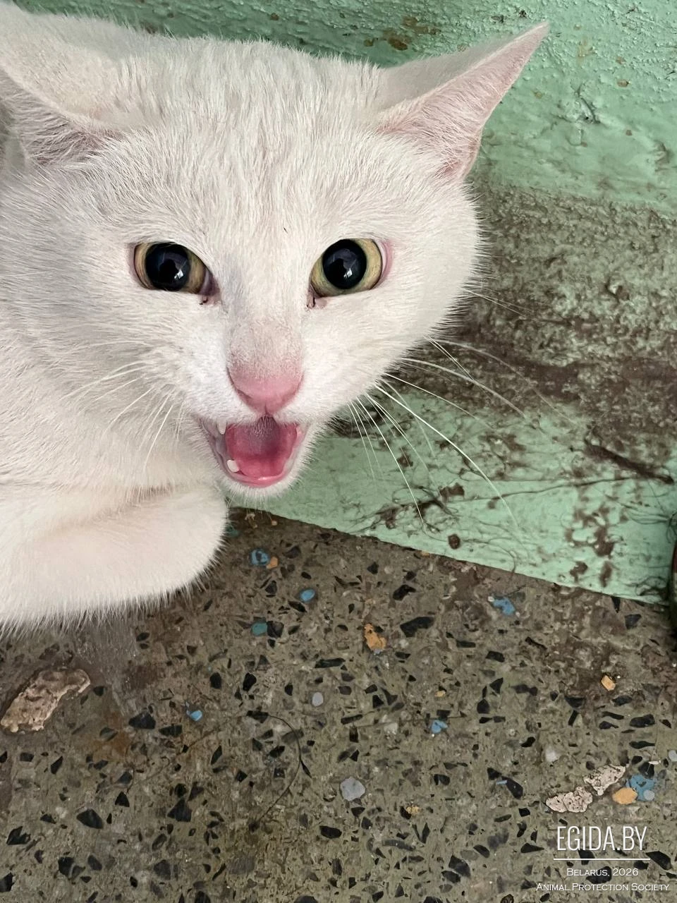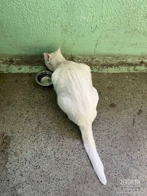 найдена кошка,белого цвета,сидит в подъезде и очень напугана номер телефона для связи- +375296090897 по адресу Орловская 1