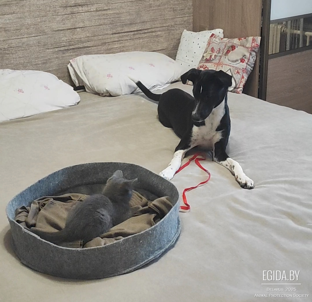 Отличная собака-компаньон, игривая, активная, умная, ориентирована на человека, быстро всё схватывает, 0 агрессии, прекрасно ладит с собаками и котами, но пока ещё боится шумных мест!
