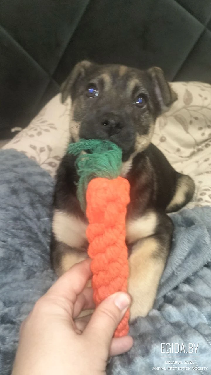 Несмотря на звучную кличку, Кнопочка не такая уж и маленькая: если верить материнскому интерфейсу, вырастет собакой средних размеров, около 20 кг, ростом по колено (стоя).