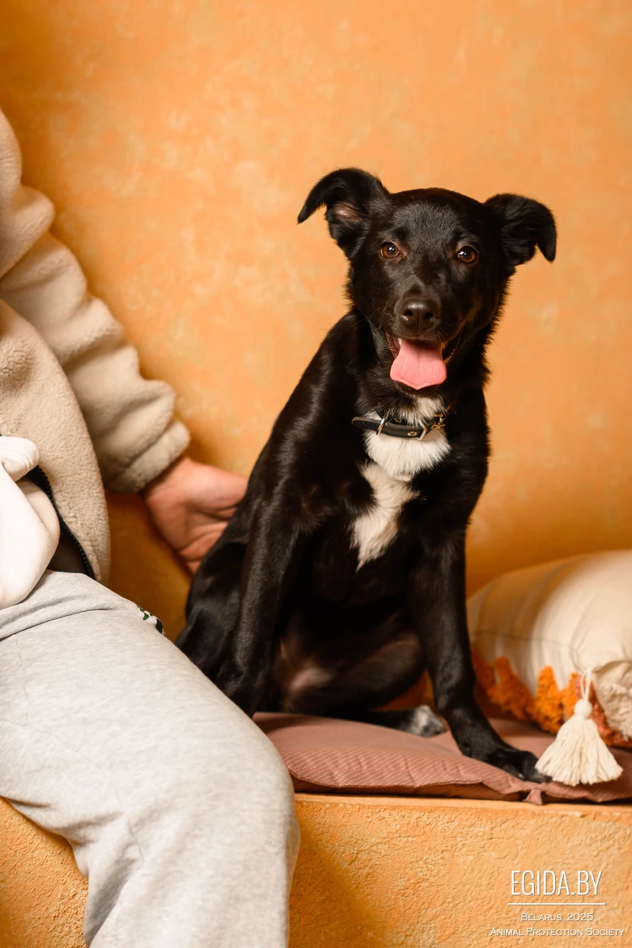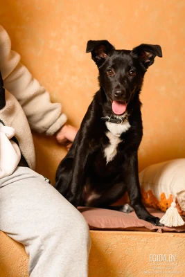 Ласковая и нежная малышка, очень ориентирована на человека, легко обучаема. Обожает котов. Обработана от паразитов, привита, приучена к пелёнке, так же ходит на улицу. Находится на временной передержке, абсолютно домашняя собака. Вырастет предположительно, собакой ниже среднего размера. Стерилизуем по возрасту.