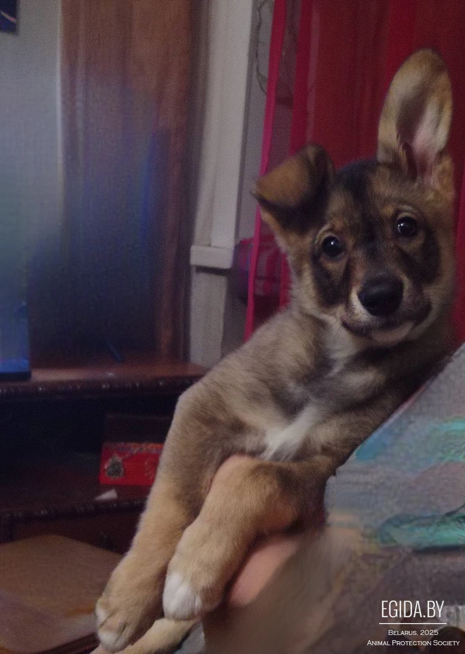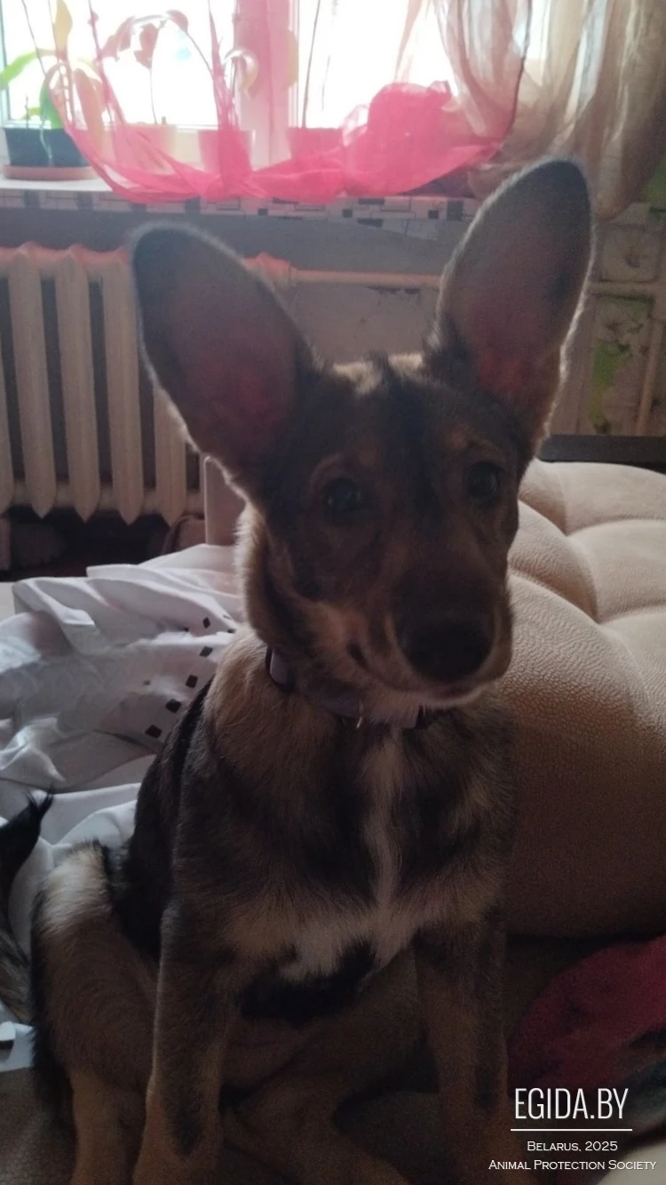 Сейчас находится на домашней передержке, живёт с кошками — контактная, социализированная.