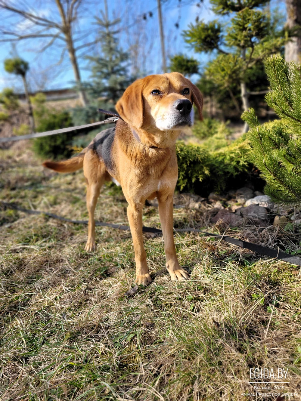 Знакомьтесь, это Алтай. Он — кобель русской гончей. Ему около 7-8 лет, вакцинирован и кастрирован.