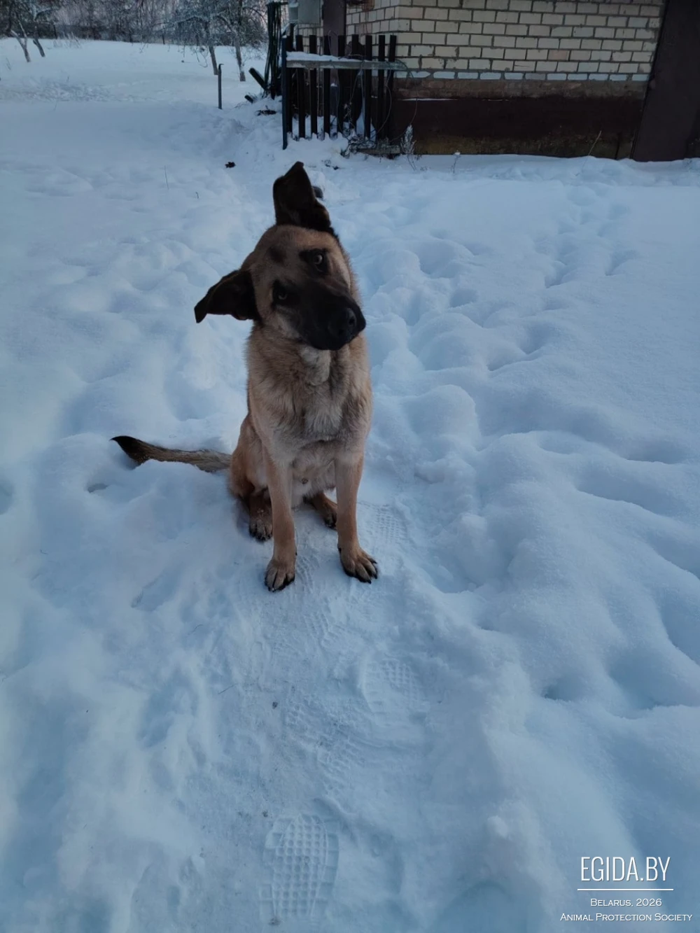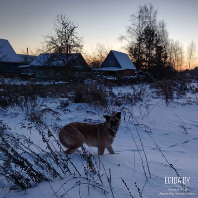 В морозы в посёлке прибился крупный кобель-подросток и не уходит.
