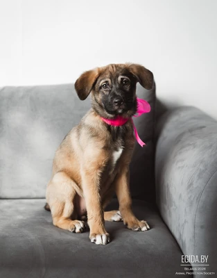 кушает консервы и сухой корм для щенков. Малышка обработана, однократно привита, есть чип, приучается к пеленке. Самая спокойная из помета. Будет небольшого размера не выше колена. В новый дом привозим. Приезжайте знакомиться.