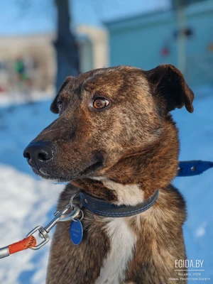 Он здоров, привит, кастрирован и обработан от паразитов. Очень хороший характер. Прекрасно ладит с людьми, детьми и животными. Весёлый, игривый и симпатичный пёс.