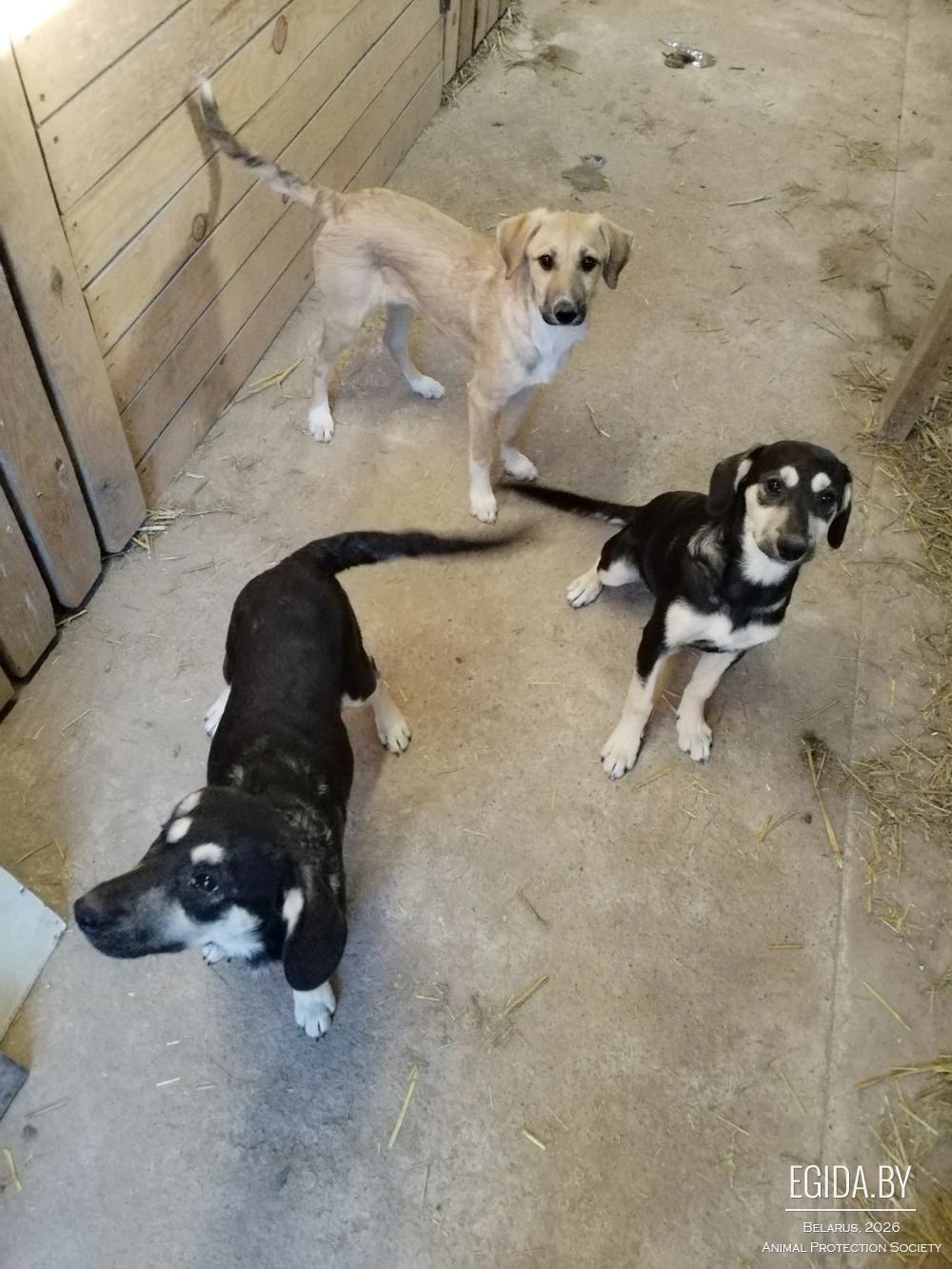 Умеют ходить на поводке, знают базовые команды. Временно в вольере до пристройства.