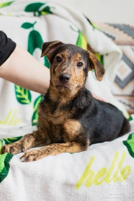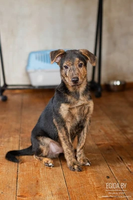 Ориентировочный возраст 2,5-3 месяца. Здоров, обработан от паразитов, готовится к первой прививке. Вырастет среднего роста. Приучен к пеленке, дома ведёт себя как приличный ребенок.