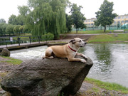 Вашей стаффочке несказанно повезло, что выиее пожалели и взяли на ппредержку, а потом и полюбили,красавицу! Яркой Радуги Эмме, она нашла своено Человека и прожила с ним до самого своено конца! Это ли не счастливая собачья жизнь? Да,это она!