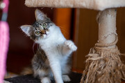 Купил ей лоток, когтеточку мисочки... предупредили что будет боятся, хватит ли терпения ... Хватило...Клепка освоилась сама приходит на кровать к нему требует ласки...
