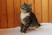 Теперь киса на передержке, в тепле и безопасности ждёт своих постоянных хозяев, вернее друзей в человеческом облике. Моська приучена к лотку, с удовольствием кушает корм и паштеты для котят премиум класса.