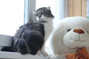 Котик не прочь и немного поиграть, но без фанатизма, конечно, как только это может себе позволить взрослый, солидный мужчина :)