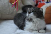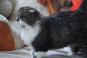 Цитата Карлсона "умный, красивый, в меру упитанный мужчина, ну в полном расцвете сил" прекрасно подходит для описания этого котофея. Только в отличие от мультяшного героя, наш обладает еще и скромностью. Да-да, Пуфф очень робкий котик, он прилично ведет себя в квартире, не наглеет (пока что :)) ), лоток использует по назначению без промаха, бодается и намурлыкивает громкие песни с благодарностью за теплый приют и вкусную пищу.