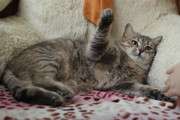 Назвали Линда, уже обработали от паразитов и вакцинировали. Кошечка научилась ходить "по делам" в лоток, из наполнителей предпочитает песчано-каменный. В квартире изначально для нее все было ново и страшно, но она постепенно освоилась и привыкла к домашней обстановке.