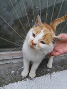 1. У главного корпуса постоянно один-одинёшенек сидит ласковый добрый бело-рыжий котик (в хорошую погоду на скамейке, траве, в плохую на ступеньках, забившись в угол). Котик уже простужен, покашливает, пропадёт совсем. Ручной.