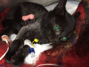 Закончен дачный сезон.Забрав самое ценное-урожай,большинство устремилось в городские квартиры, поближе к комфорту, оставив на участках то, что в понятие комфорта не вписывается-котов и собак.Сбиваясь в стаи и по одному, бывшие домашние любимцы ,ошалев от реальности, рыскают по дачам в поисках еды и укрытия, часто становясь жертвой злого умысла или обстоятельств. 28 октября незнакомая и очень осторожная мама-кошка привела к месту кормежки 3 котят, активных и голодных, в течение дня их не было видно, а вечером совершенно случайно на участке в темноте, в мокрой траве был найден один из этих котят,чёрный,еле трепыхавшийся ,мокрый и колотящийся от холода. После обтираний и согреваний котёнок ожил и даже покушал, но оставался почти недвижим, действовала только левая передняя лапка.Пережив ночь, поехали в клинику, -и вот она, огромная радость!-позвоночник цел, перелом плечевой кости справа,необходим остеосинтез, проще говоря ,операция по сбору кости с постановкой спицы. И совсем мелочи-ушной клещ, больные глазки, общее слабое состояние.Сказали дня три дать поднакопить сил, 2 ноября,в понедельник записаны на операцию. Это оказалась полностью чёрная девочка, месяца 1,5. Маленькая,покалеченная непонятно кем и как, обессиленная и продрогшая, она на одной лапке в полной темноте умудрилась приползти в надежде на помощь, а я каким-то чудом, проходя невдалеке,смогла её заметить. Тепрерь у меня новый дачный сюрприз по имени Скарлетт.