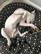 Мне очень понравился на акции, очень доброжелательный! Он белый в редкие светло-рыжие конопушечки, очень интересный окрас! Бедный мальчик, глухой!
