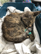 Сейчас кошка у Тани, кормим через зонд, даем лекарства. Мне показалось, что она оживилась еще вчера в клинике после того как наконец ее покормили. Сегодня вышла из переноски и немного походила. Через 2-3 дня едем на контроль и анализы крови. Пока надеемся на чудо и на то, что сработает антибиотик и мы вытянем ее.