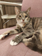 Ромашка (Рома) - трехцветная девушка, возраст примерно 5 месяцев. Трусишка. В руки взять можно, но сама не подходит, нычкуется под ванной и кухней.