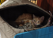 История с этими котятами длится очень давно. Была уверена в быстром пристройстве, но случился ковид, потом лето, потом опять ковид, выборы, людям не до новых питомцев, вот и зависла эта малышня, а также куча других котят, кошек и котов. Да и к тому же общительные и любопытные малыши вдруг на передержке стали шипунами и кусаками, поэтому понадобился довольно длинный адаптационный период. Хотя конечно у них есть повод не доверять людям: их гоняли, травили, в результате мамашка погибла, а этих двух мне удалось вытащить из дырки подвала в последний момент. Сейчас они 7-месячные подростки, серая девочка Баста и персиковый мальчик Перс. Перс кастрирован, так и остался трусом, но со своими игрун и весельчак, пойдет людям, которые не очень любят телячьи нежности, потому что на руках выдерживает пару минут для погладиться, потом предпочитает просто сидеть или лежать рядышком, даже если это хозяйский стул и ему приходится влипнуть в спинку, но чтобы быть рядом. Баста - крепкий орешек, близкий контакт с людьми ей удовольствия не доставляет, поэтому она для меня большой вопрос куда её пристраивать, хотя она полностью домашняя примерная кошка.
