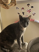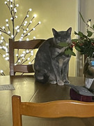 Ксюша такая смешная. Как все улягутся спать, она находит на полу специально оставленную котам для игры пробку от шампанского и начинает кричать, как дурная, и бороться с пробкой6 берет ее в рот, бегает с ней, потом бросит на пол и снова орет перед тем, как напасть на нее и снова схватить ее и носить ее в зубах..