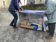 Кошку забрала из ветклиники Элен и (на фото)это она у себя где то установила клетку для кошки. Они обе сказали что, что кошку назвали( записали в ветклинике) моим именем . Сегодня ветеринары местные работали до обеда, завтра- выходной, смотреть за ней некому, потому сказали забрать. В понедельник ее повезут женщины назад.
