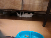 Начало истории: в группе Подслушано Сморгонь 25 марта 2017 появился пост девочки-школьницы: "Понимаю, что надежда ничтожна, но, кто-нибудь, помогите спасти жизнь котенку, находится сейчас в Белевичах, у него нет двух передних лап(наверное попал в капкан), ему очень тяжело передвигаться, он умрет на улице, заберите кто-нибудь себе, пожалуйста, хотя бы в деревню . Анастасия Кулак" Написала девочке, что временно возьму, а потом будем искать куда его пристроить, раскидала посты по соцсетям. Но котенка не удалось поймать, потом пропал. Вообщем история длилась долго... В Пасхальное воскресенье девочка с мамой котейку отловили, помыли , вытащили кучу клещей и привезли ко мне. вот такой пасхальный сюрприз. Это девочка, на вид котенок 5-6 месяцев, тощая до ужаса весом 1кг 400гр. И дрожащая от страха. Осмотрена ветом: истощение, воспаление ( в легких сухие хрипы), ущи в чет-то похожем на сажу, один клык сломан, немного черный. возраст от 7 до 10 месяцев, просто очень мелкая недокормыш. Правая передняя лапа- небольшая культя, левая почти целая, искалечена часть где пальчики и подушечка: есть точно один пальчик с когтем, есть еще коготь но он вывернут и впивается в мясо, его подстригли, такое ощущение что лапка была искромсана, а потом что осталось срослось как попало. Как она выжила, дважды попав в капкан (добрая бабушка в деревне его ставит во дворе, чтоб не шлялся кто попало) не понятно, и как давно она так выживает, как добывала еду в деревне загадка, но раны давно зажили. Есть готова всё, она не ест, а всасывает моментально: и натуралку, и прессервы, сухой корм не ест совсем. Но размоченный в куринном бульоне уплетает. Продолжение: Прошло 10 дней , наели 1 кг и весим 2 400. Хрипов почти нет. кушаем очень хорошо. Но боимся всего до ужаса: громких звуков, уборки в клетке, даже когда даю лекарство или мою лапки и попу. От страха сразу писаемся и какаемся, и если не увидишь, так и лежит описатая в луже.