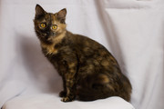 Розочка – маленькая очаровательная кошка-черепашка с неповторимым окрасом и милой мордочкой. Ей около 6 месяцев, и она уже успела стать настоящей любимицей тех, кто с ней знаком. Роза очень игривая и любопытная, но вместе с этим невероятно нежная и ласковая. Она искренне любит получать внимание и дарить свою ласку в ответ – настоящий источник тепла и радости в доме!