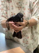 Это самка. Назвали Гульнарой. У Гульнары оскольчатый открытый перелом крыла. Спицу туда не вставишь, поэтому доктор наложила фиксацию на крыло. Надеемся, что срастется, но есть опасность некроза, и в этом случае грозит ампутация. Птица молодая, поэтому все должно быть ок.