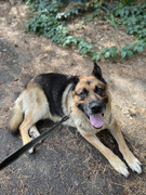 Отвозила в Геранёны свою галку и на обратном пути увидела тяжело бредущего вдоль трассы огромного пса. Остановилась покормить, а он запрыгнул ко мне в машину. Пришлось везти в Минск, без всяких мыслей где разместить. Марина помогла сначала найти передержку на неделю, потом на месяц. В конце октября забирать( Из-за грязи я даже могла подумать, что передо мной овчарка. Он был весь в болотной тине, мокрый, вонючий и несчастный. Сразу поехали в ДВ. По итогу возрастной пес, лет 6-8, анализы нормальные для такого возраста. Зубы сточены, но ухоженные. Пёс упитанный. Позже сделали узи сердца и обп. Сердце в норме. Увеличена селезенка, образования в простате. Нужна кастрация. Чипа нет. Вес 50 кг. Характер золотой. Послушный, ласковый, спокойный. Требует постоянных почесушек. Боится остаться один, должен сидеть рядом. Отлично ходит на поводке, причем только слева. Переходит за спиной и садится сбоку. Явно с ним занимались и хорошо смотрели. Следов от ошейника нет, значит не цепной. В помещении ведет себя свободно. Но лифта и лестницы не знал. Скорее всего проживал в частном доме рядом с людьми. Как он оказался на трассе и где его хозяева - вопрос. Никто не ищет.