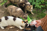 У моей хорошей знакомой, доброго Человека с большим сердцем этой зимой умерла бабушка-соседка . У нее было большое хозяйство: козы, куры, собаки и кошки. Многие ходили к ней за козьим молоком и яйцами. Кошек и собак она любила ПО-СВОЕМУ и их нестерилизовала. Говорила, что они тоже должны получать удовольствие. Численность кошек и собак она регулировала тем самым не затейливым варварским способом. . Так вот после ее смерти коз и кур забрали в деревню ее дети, а кошки и собаки остались – у детей есть свои. На сегодня получается, что котиный прайд состоит из СЕМИ взрослых кошек и ЧЕТВЕРЫХ котят. Ирина думает, что есть еще котята, но они пока не показываются. Шесть кошек стерилизованы Ириной без привлечения талонов, и они очень ласковые. Одна кошка пока не стерилизована и диковата, но всегда находится рядом с остальными. Четверо котят – диковаты, но подходят кушать со всеми, им сейчас месяца четыре. Собаки – это мама с дочкой. Мама очень старенькая и уже не рожает, ее дочь, я зову ее Манечка, этим летом рожала щенков, слава Богу их пристроили.Собачки, что мама, что дочка мелкие, не привередливые, но на цепи их никто никогда не держал. Манечку мы планируем стерилизовать в ближайшее время. Некоторые соседи тоже подкармливают кошек и собак, но идет зима и так хочется, чтобы у них у всех был свой диван! А недавно в котиную семью подкинули еще одного котенка, совсем кроху. Плакал так, что напугал всех кошек. Удалось найти ему передержку своими силами. Там его обогрели и приучили к лотку. Но силы у Ирины на исходе. Я очень прошу у Эгиды взять тему под свой патронаж. Ирина- Человек, который не жалуется, но с ситуацией не справляется. Нужна помощь.